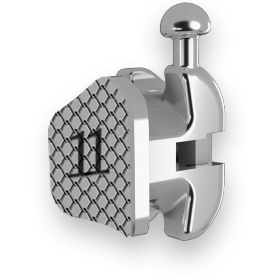 03Ample Tie-wing Area Mesial Tipping of Crimpable HooksThe recessed ligation wings offer ample space for easy operation and reduce the risk of detachment. The crimpable hooks are moderately long and mesial tipping, accommodating various traction angles.